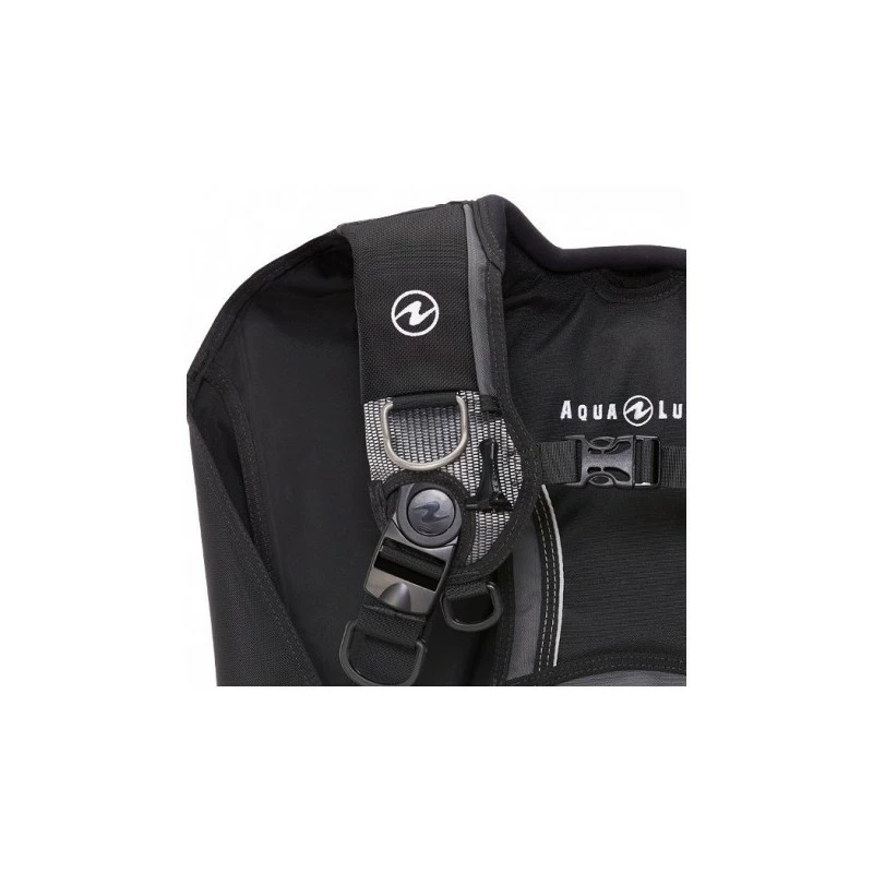 –Â Poches de lest non largables au dos du gilet, aidant le plongeur Ă obtenir une position correcte dans l’eau.