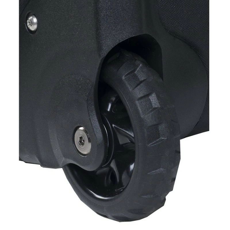 La base renforcée & les roues résistantes au sel de mer protÚgent ce sac exceptionnel & vous permettront de transporter sans effort votre équipement.