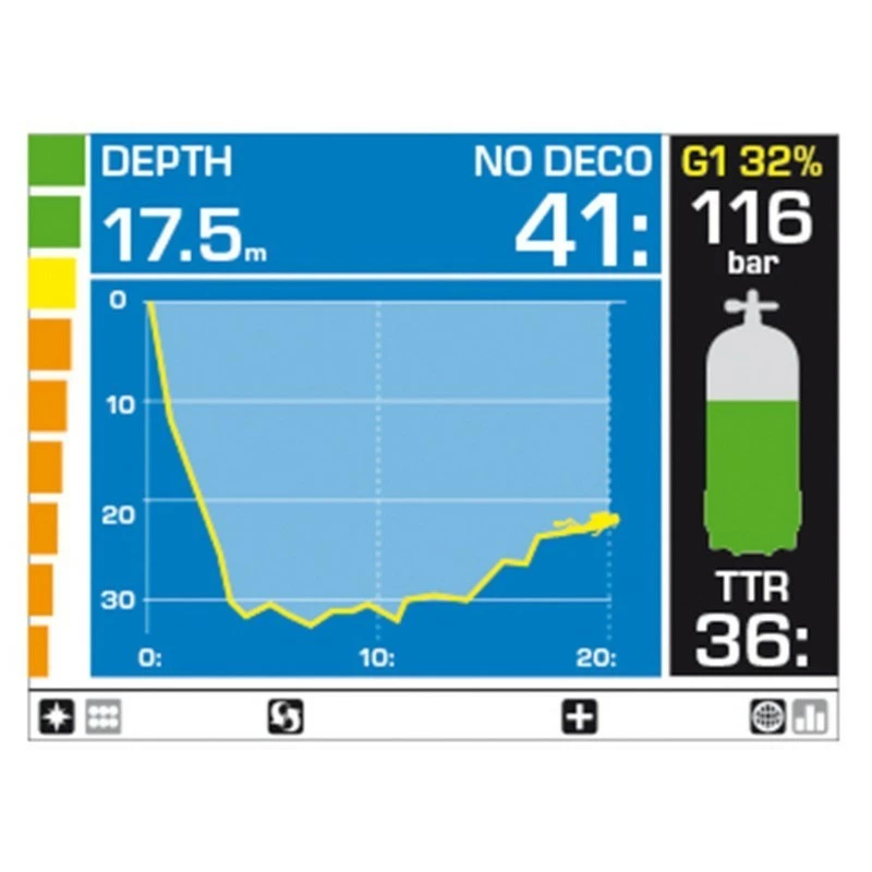 – ICON HD fait dĂ©filer & montre toute la courbe de plongĂ©e en temps rĂ©el.