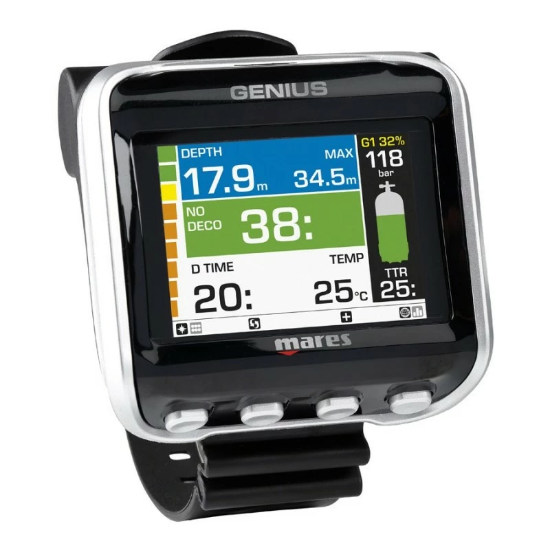 – Algorithme ZH-L16C avec facteurs de gradient & prĂ©diction multi gaz compatible nitrox & trimix, jusquâĂ 3 gaz.