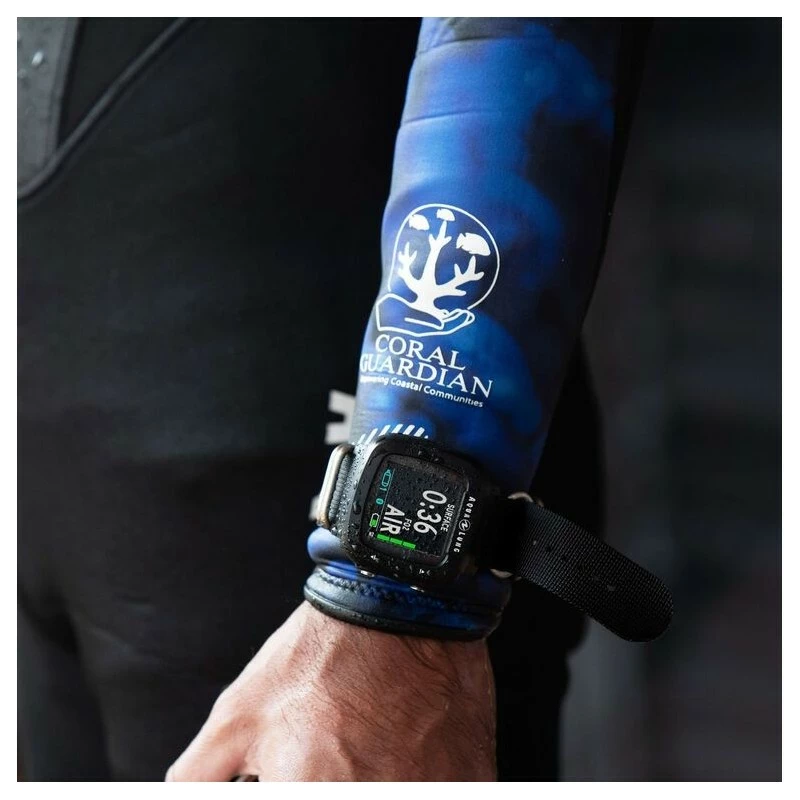 – Conception imprimĂ©e sur le poignet pour aider Ă garder les ordinateurs de plongĂ©e en place.