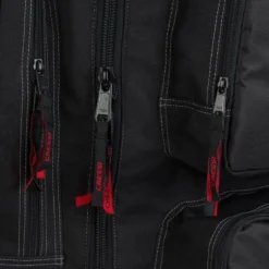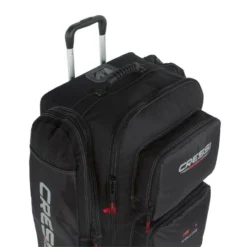 – 2 grandes poches Ă soufflets sur le devant, avec des fermetures Ă glissiĂšres, 2 poches latĂ©rales pour les palmes & 1 petite pochette sur le dessus pour l’adresse.