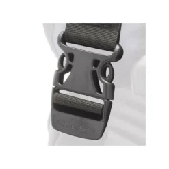 La sangle sternale est fermĂ©e par une boucle qui a Ă©galement la fonction de sifflet dâurgence ou dâappel